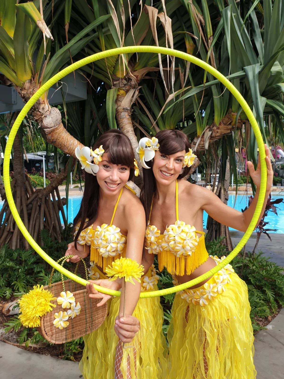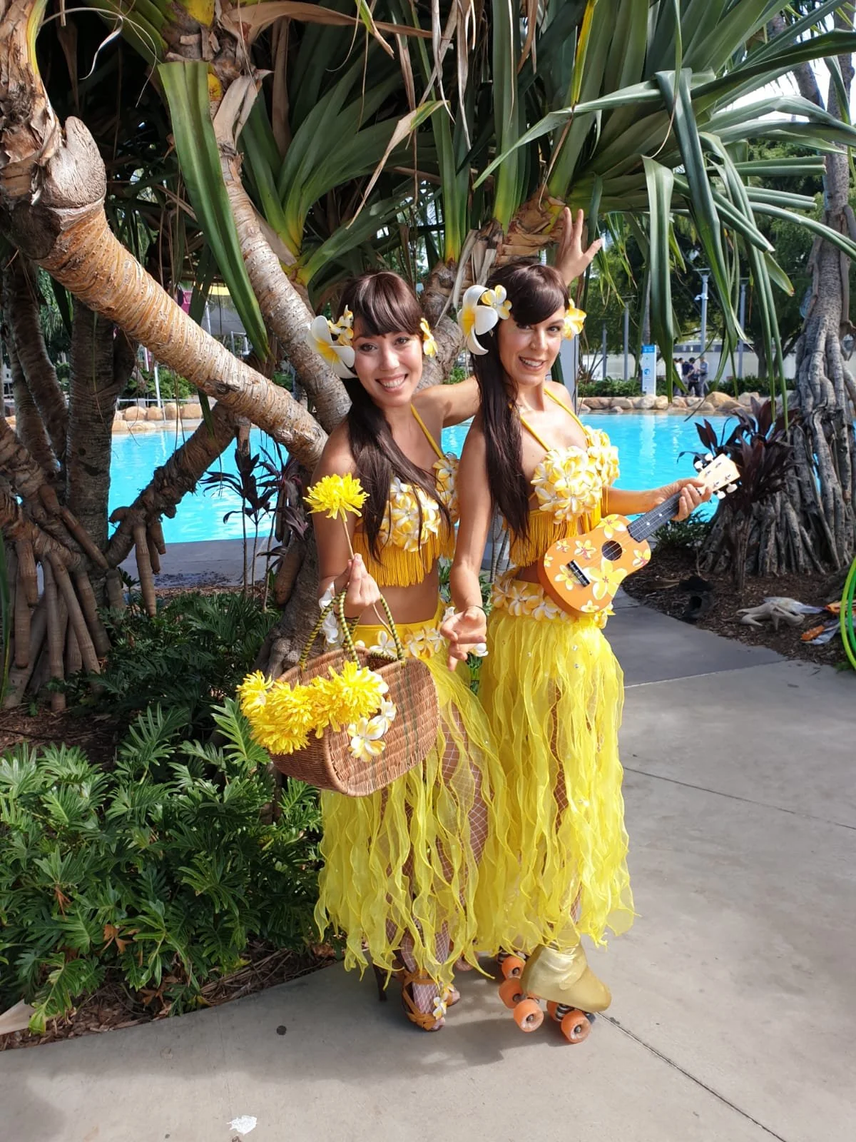 “Frangipani ladies” are sweet, gentle characters, they are like a ray of sun. They like walking with their long legs along the boardwalk or at your event, while playing sweet tunes with their real ukuleles. They like donating little fresh flowers to your guests and bring a touch of joy to all your guests.